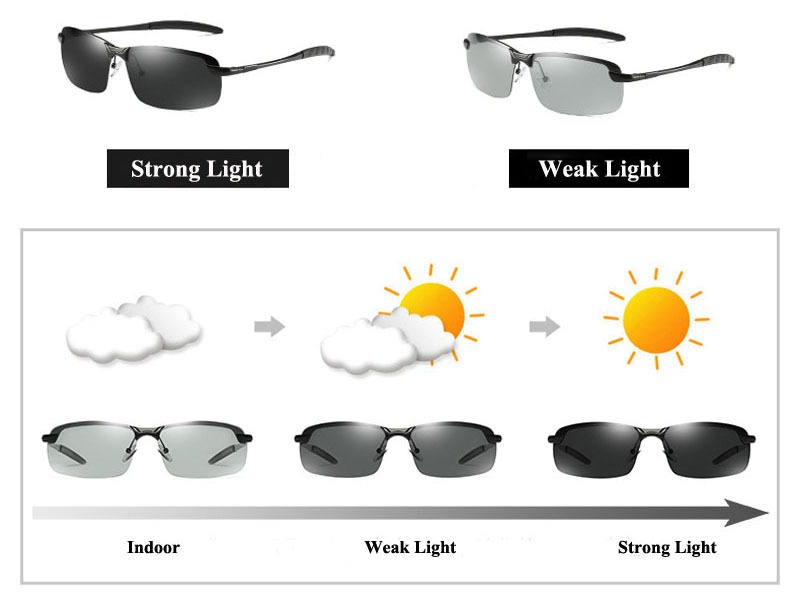 Tròng kính sẽ tự thay đổi màu sắc khi những tia UV trong mặt trời ảnh hưởng tới kính. Ngay ở thời tiết trong ngày âm u thì kính cũng sẽ đổi màu bởi tia UV có thể xuyên qua những đám mây.